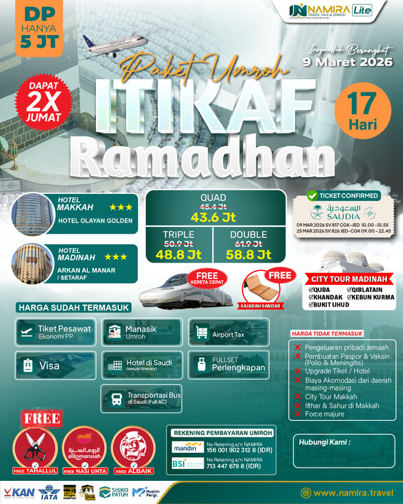 Nikmati perjalanan ibadah ke Tanah Suci dengan pelayanan terbaik, fasilitas nyaman agar ibadah Anda lebih khusyuk dan tenang.